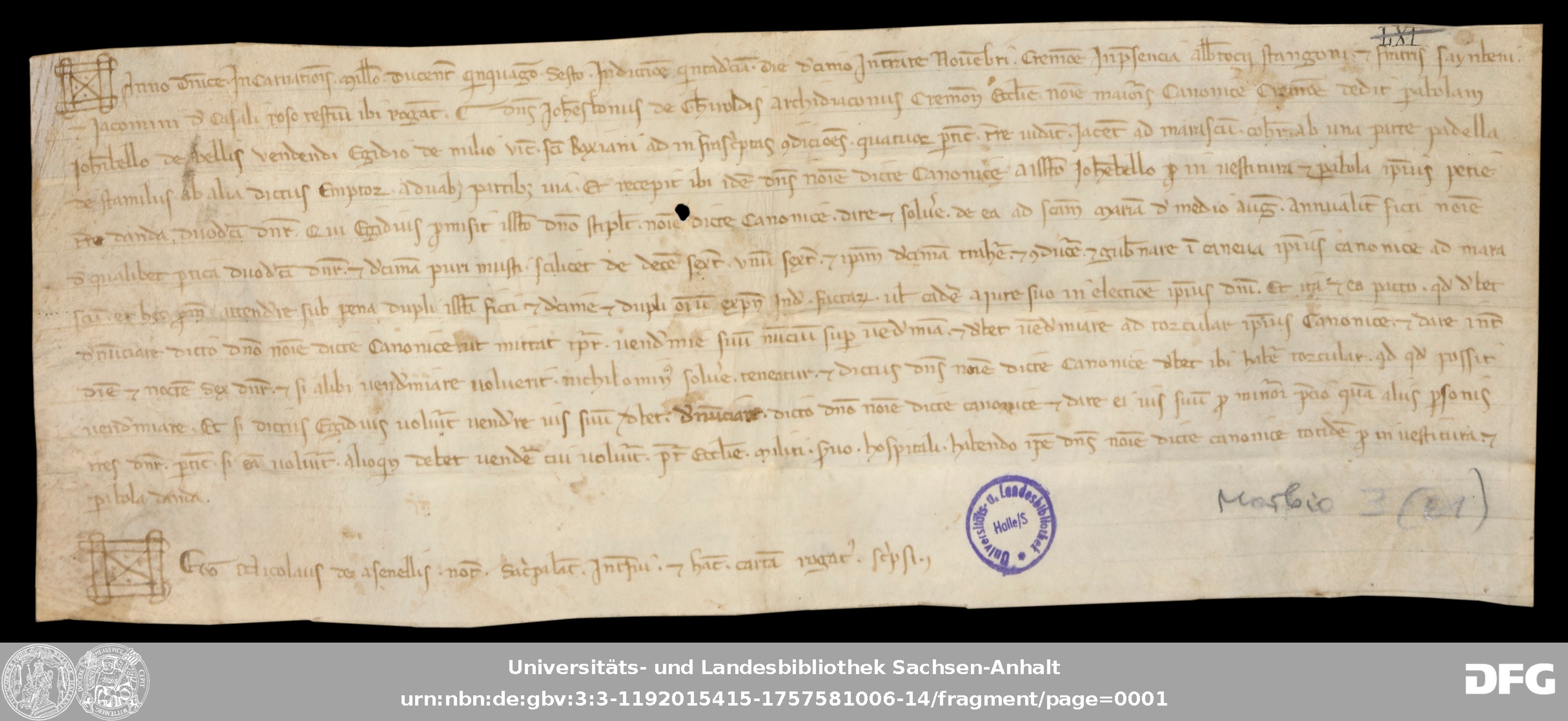 | Series: | Urkunden aus der Sammlung Morbio der Universitäts- und Landesbibliothek Sachsen-Anhalt Halle |