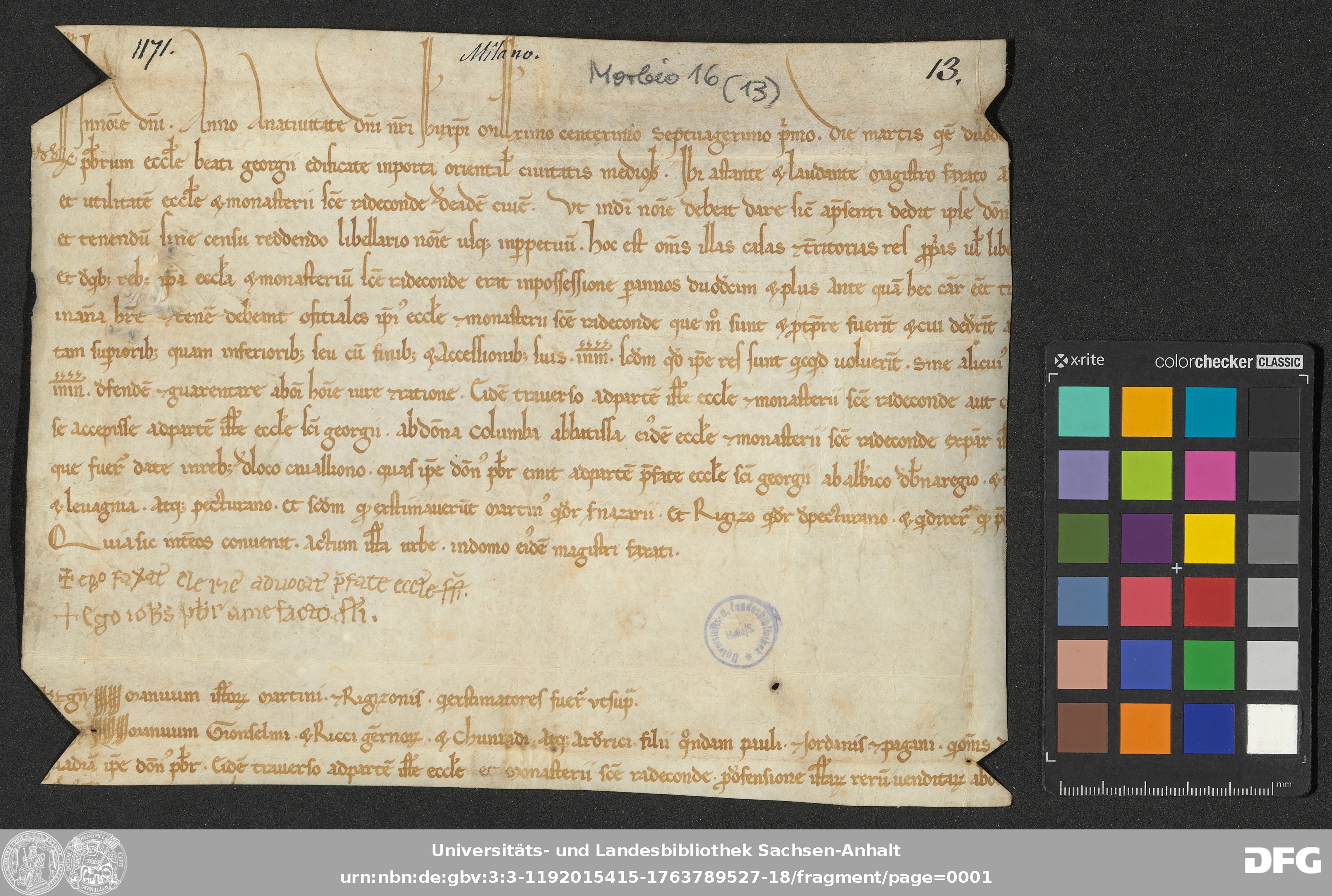 | Series: | Urkunden aus der Sammlung Morbio der Universitäts- und Landesbibliothek Sachsen-Anhalt Halle |