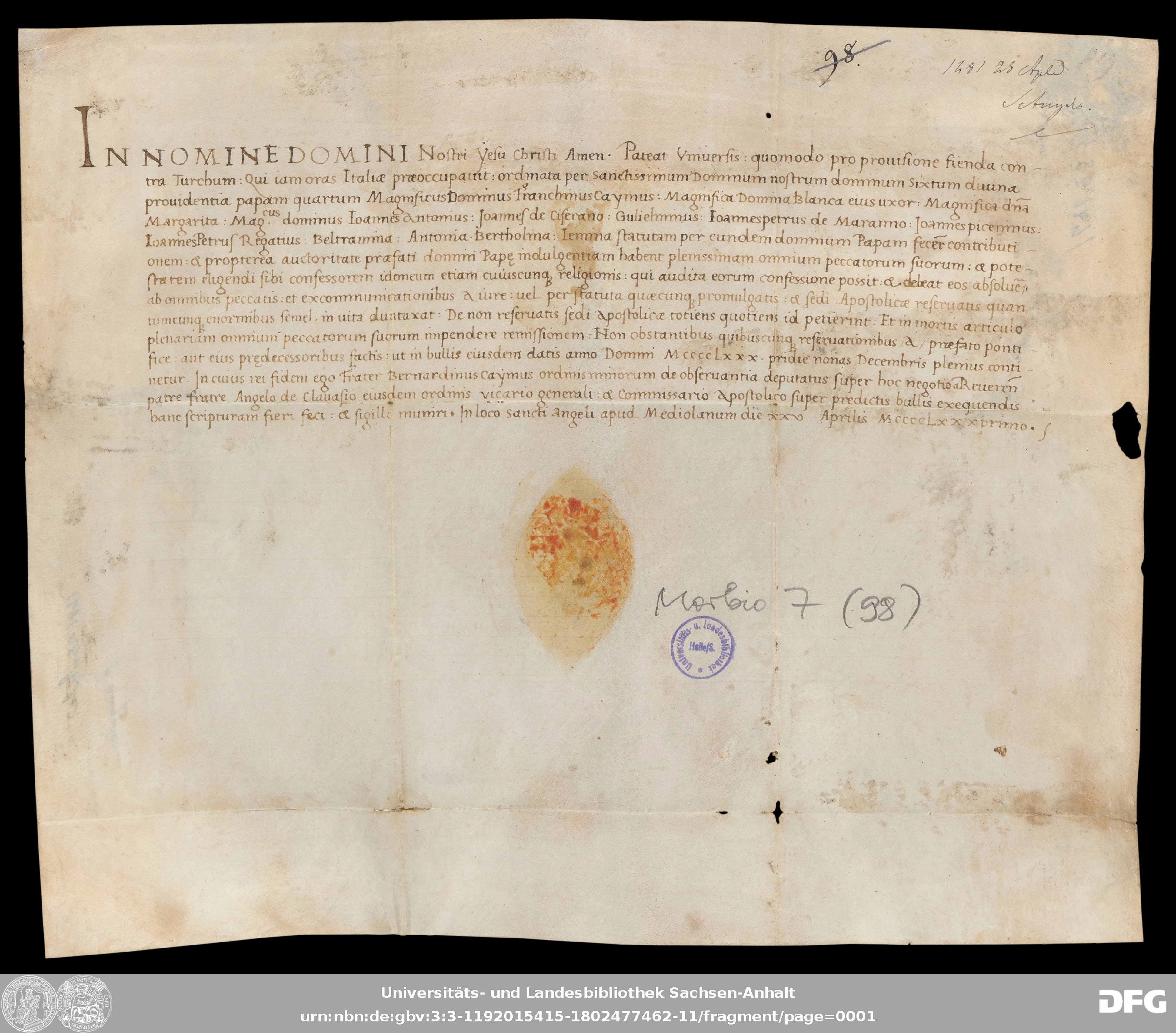 | Original Publication: | Universitäts- und Landesbibliothek Sachsen-Anhalt, Morbio 7 (98) |