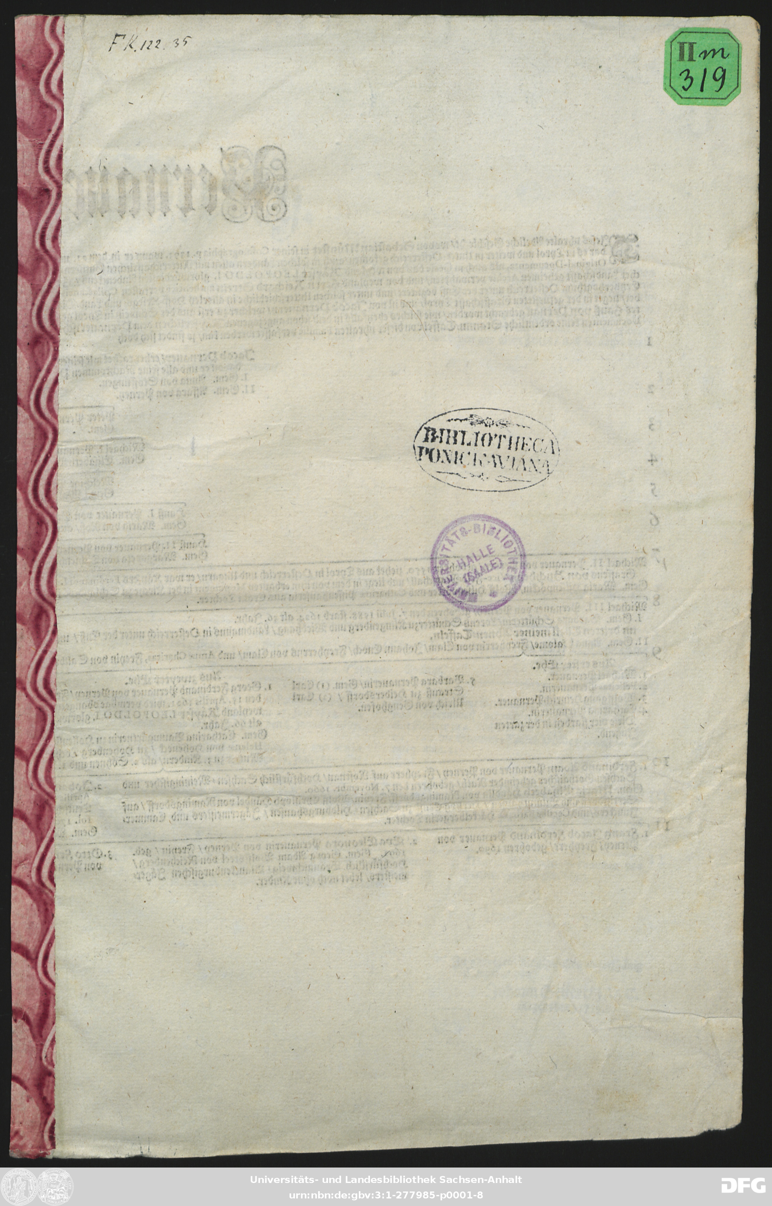 | Original Publication: | Universitäts- und Landesbibliothek Sachsen-Anhalt, Pon IIm 319, FK |