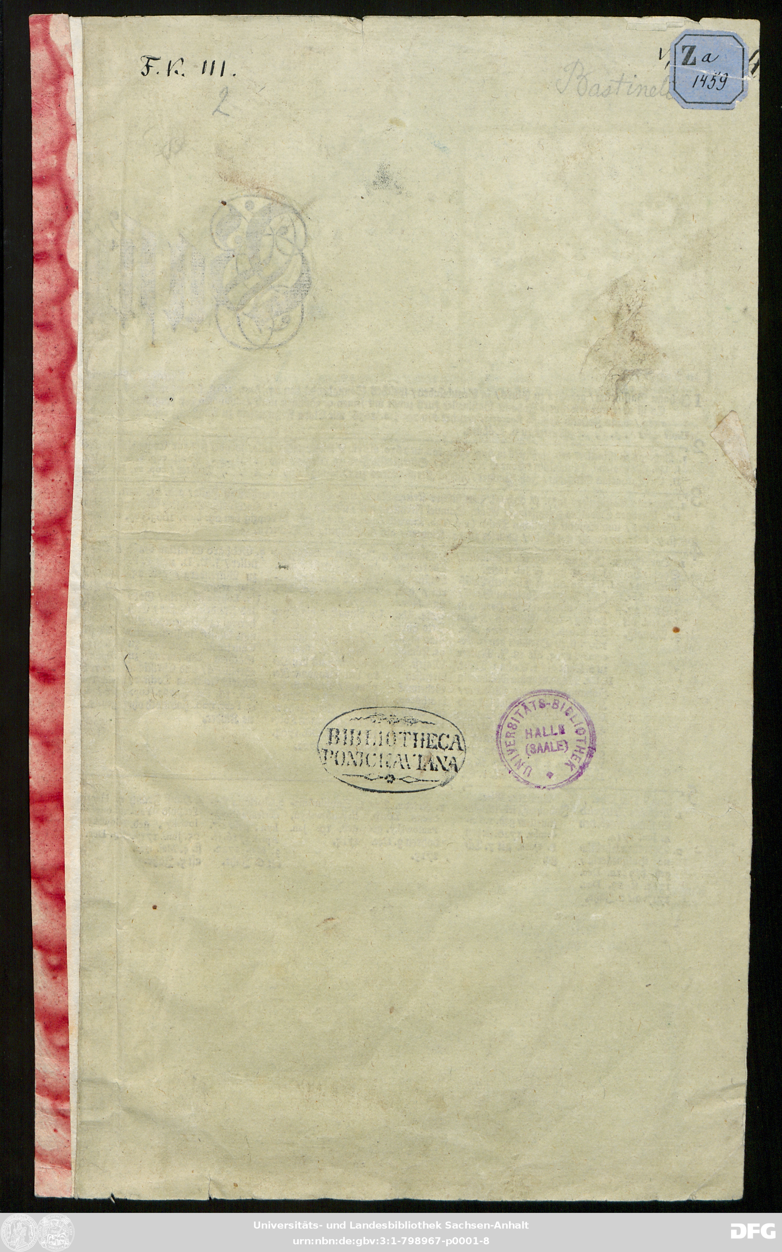 | Original Publication: | Universitäts- und Landesbibliothek Sachsen-Anhalt, Pon Za 1459, FK |