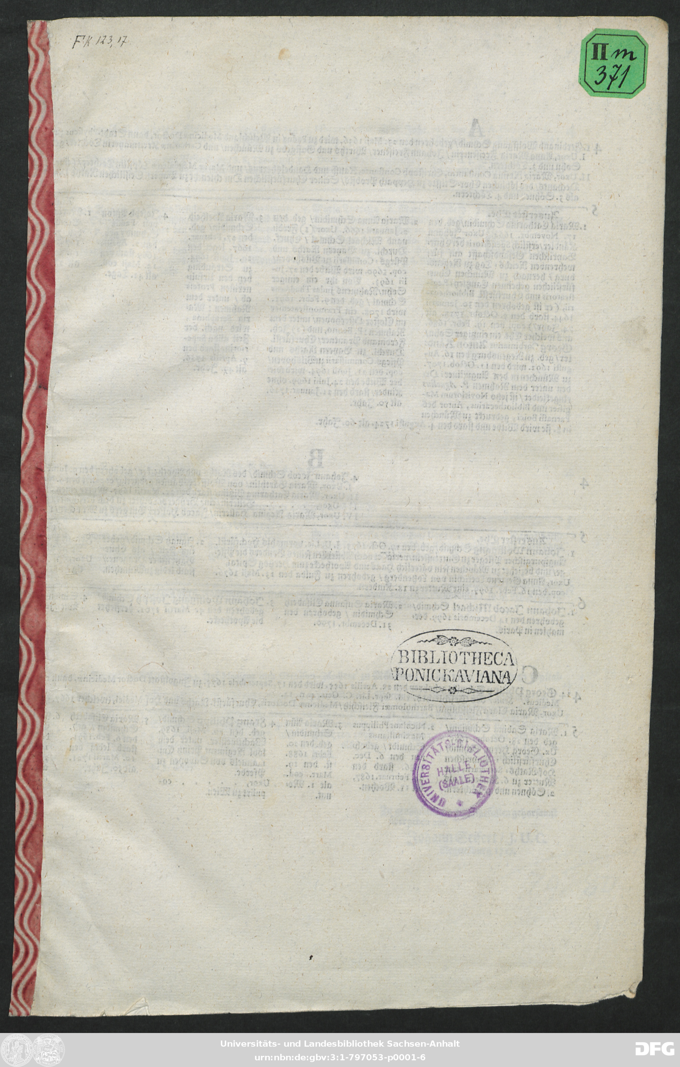 | Original Publication: | Universitäts- und Landesbibliothek Sachsen-Anhalt, Pon IIm 371, FK |