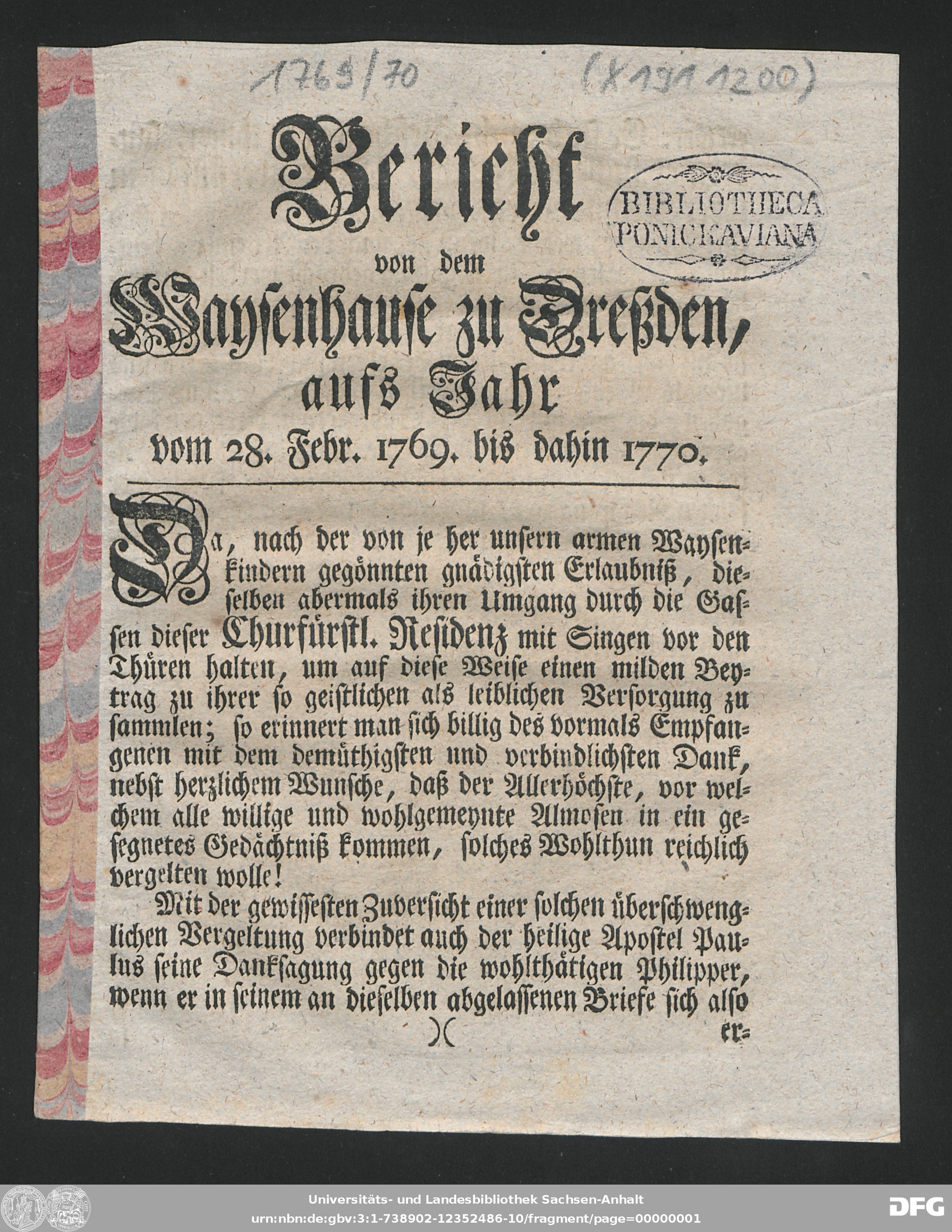 http://dx.doi.org/10.25673/90378| Title: | Bericht von dem Waisenhause zu Dresden : aufs Jahr ... |