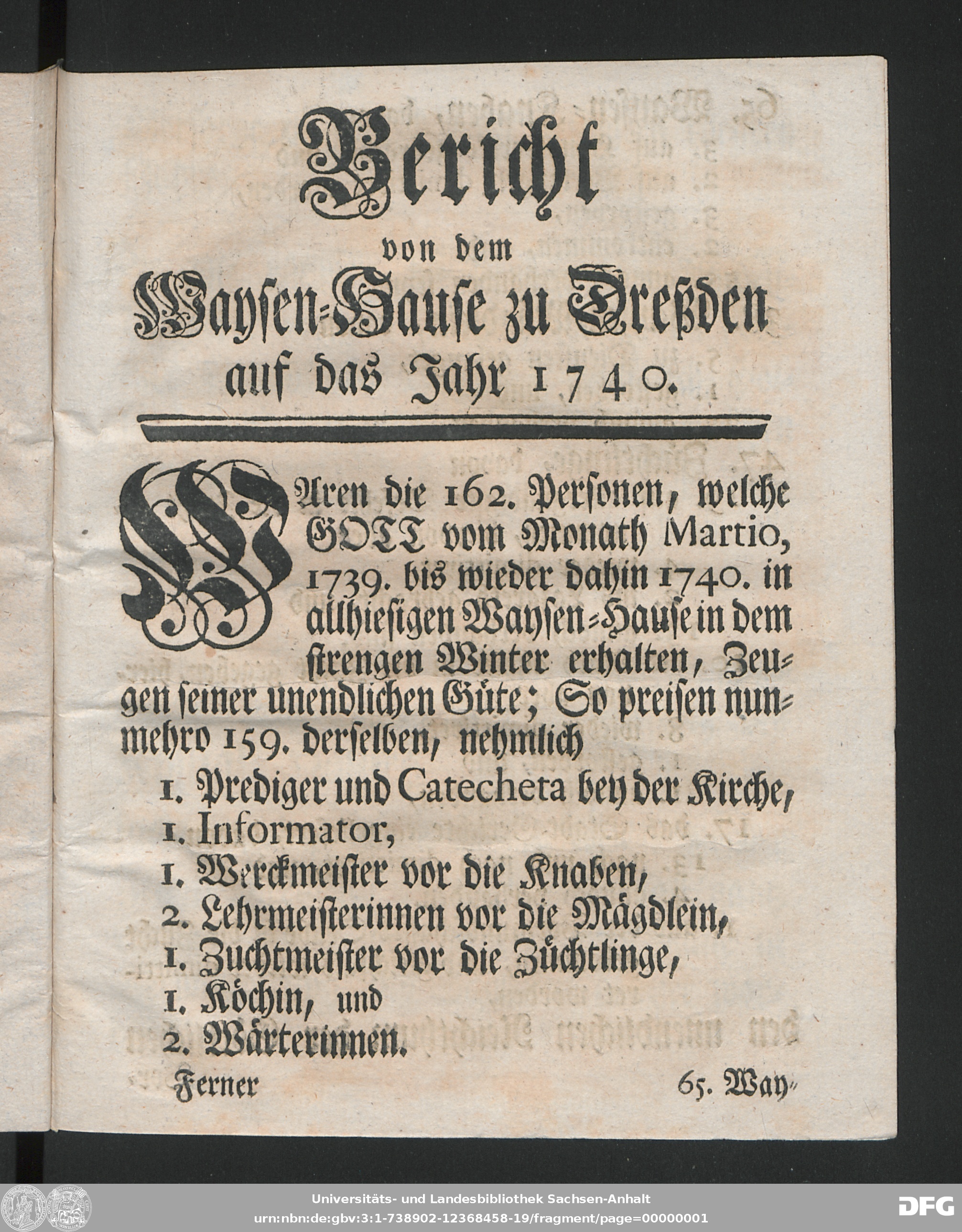 http://dx.doi.org/10.25673/90411| Title: | Bericht von dem Waisenhause zu Dresden : aufs Jahr ... |