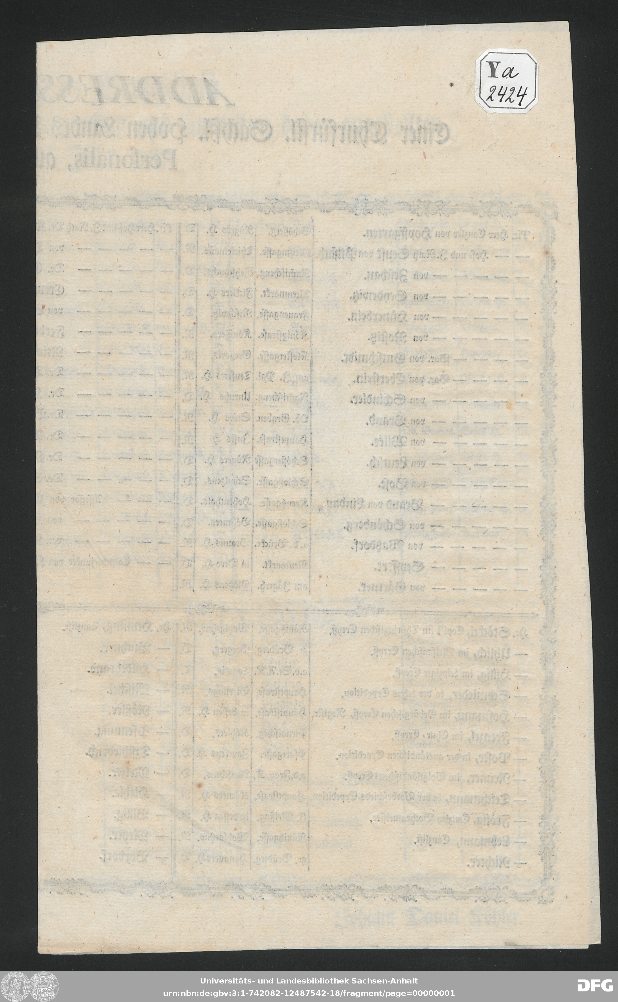 http://dx.doi.org/10.25673/90458| Title: | Addresse-Verzeichnis einer Churfürstl. Sächßl. Hohen Landes-Regierung und sämtlichen dabey angestellten Personalis : aufs Jahr ... |