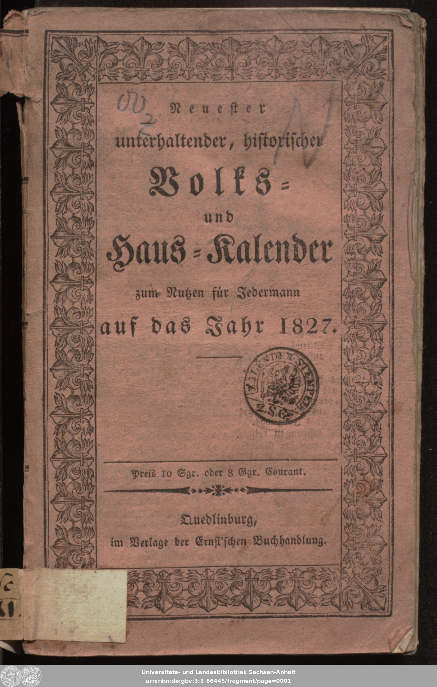 | Published: | Quedlinburg : Ernst, 1827 |